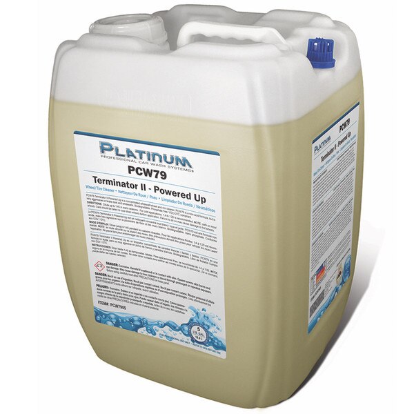 TERMINATOR 2 WHEEL CLEANER - CONCENTRATED. 5g. Super concentrated, non-abrasive whitewall/wheel and rim cleaner; a non-acid formula that is very aggressive on brake dust and whitewalls. Excellent hard water and freeze/thaw stability. Phosphate free. VOC/OTC compliant. Biodegradable. Dilute up to 1:45 in warm seasons, up to 1:20 in cold seasons.